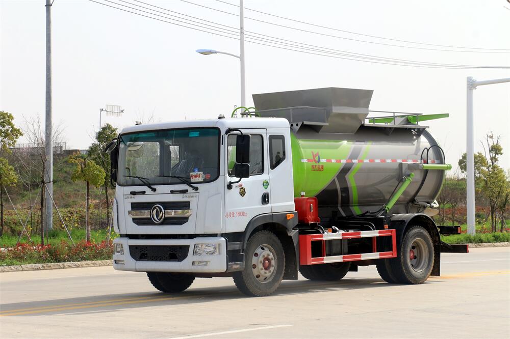 上裝配置:罐體容積10m3,配備120L/240L掛桶提升翻轉(zhuǎn)機(jī)構(gòu),液壓系統(tǒng),后蓋液壓鎖緊開啟,罐體可以舉升自卸,尾部帶自流閥;用于運(yùn)輸液態(tài)垃圾,其特點(diǎn)操作簡單,密封性好,無泄漏,無異味;可選裝固液分離功能,推板擠壓功能,常用于餐館的垃圾轉(zhuǎn)運(yùn)處理。
