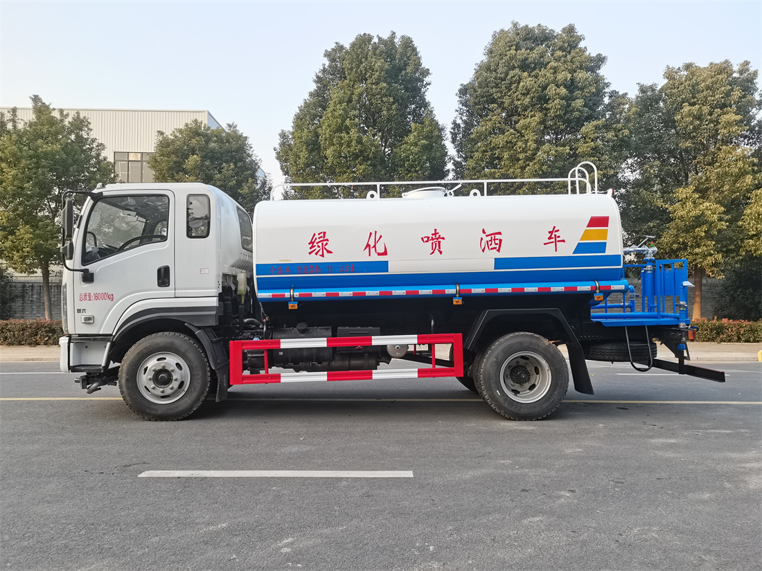 灑水車性能特點:前沖(噴)后灑,帶側噴,罐體后帶工作平臺,平臺上安裝綠化灑水炮,灑水炮可360旋轉,可連續調成直沖狀、大雨、小雨、毛毛雨,帶安全護欄,配備全國質量評比**名的杭州威龍大功率專用  灑水泵,泵可自吸自排,安裝過濾網,帶消防接口,可通過消防栓進水,帶自流閥,隨車選裝20米綠化卷盤,可噴灑農藥。
