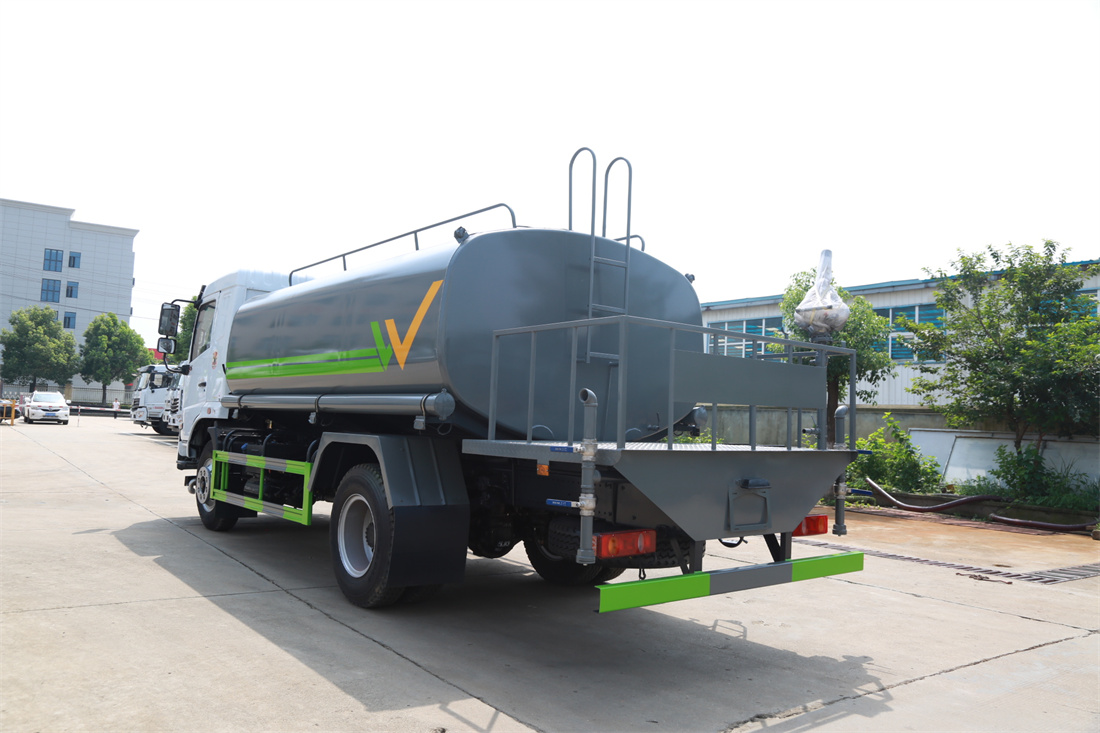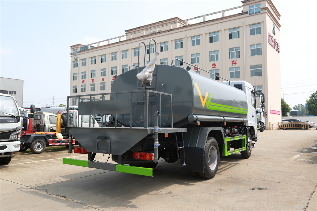 灑水車前裝有鴨形噴嘴或圓頭沖嘴,后面裝有圓柱開灑水噴嘴或蓮蓬頭噴嘴,后部有一工作平臺,裝配有水炮。后部還可裝8個噴嘴(選裝)。